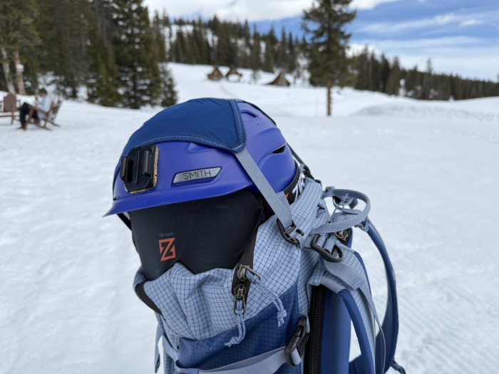 While touring with this pack, we did notice that the snowboard carry was a little janky. The attachment straps were small and not the most ergonomic to use or for vertical board carry. Also, carrying a snowboard blocked the helmet carry, and they couldn’t be used at the same time. While splitboarding, we avoided both of these issues by carrying the board in split mode with the pack’s A-frame carry.