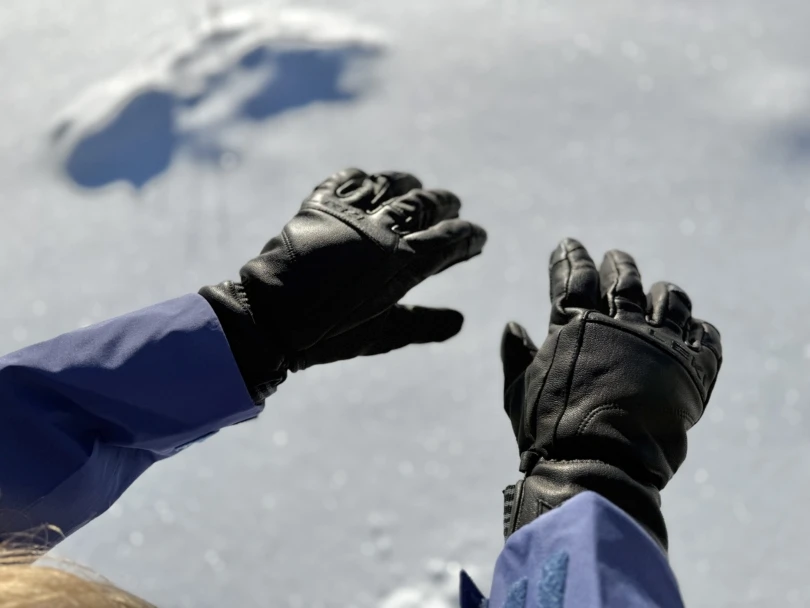| Ortovox Merino Freeride | $200 | Goatskin leather, leather reinforcement in the purlicue, synthetic waterproof-windproof fabric on exterior thumb, dorsum, and gauntlet | Gauntlet | 7/10 |