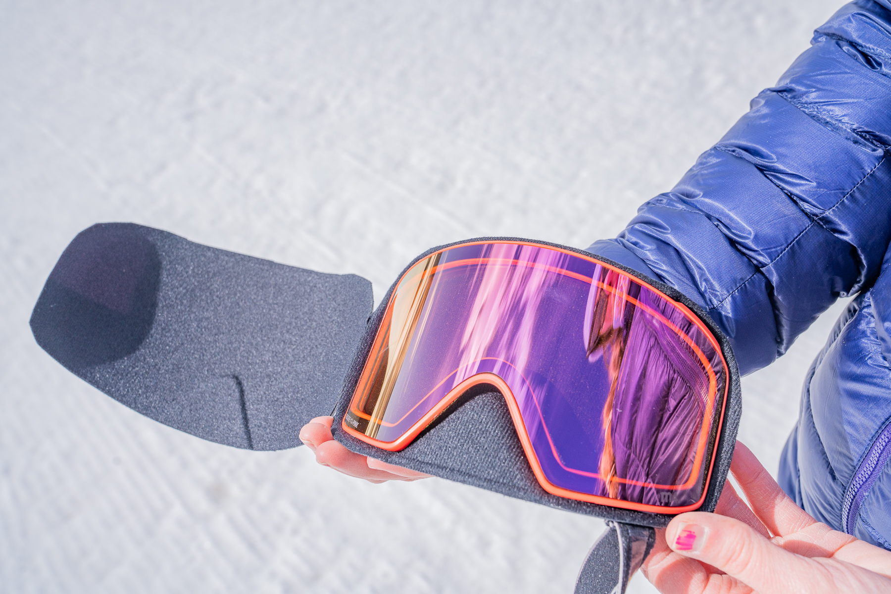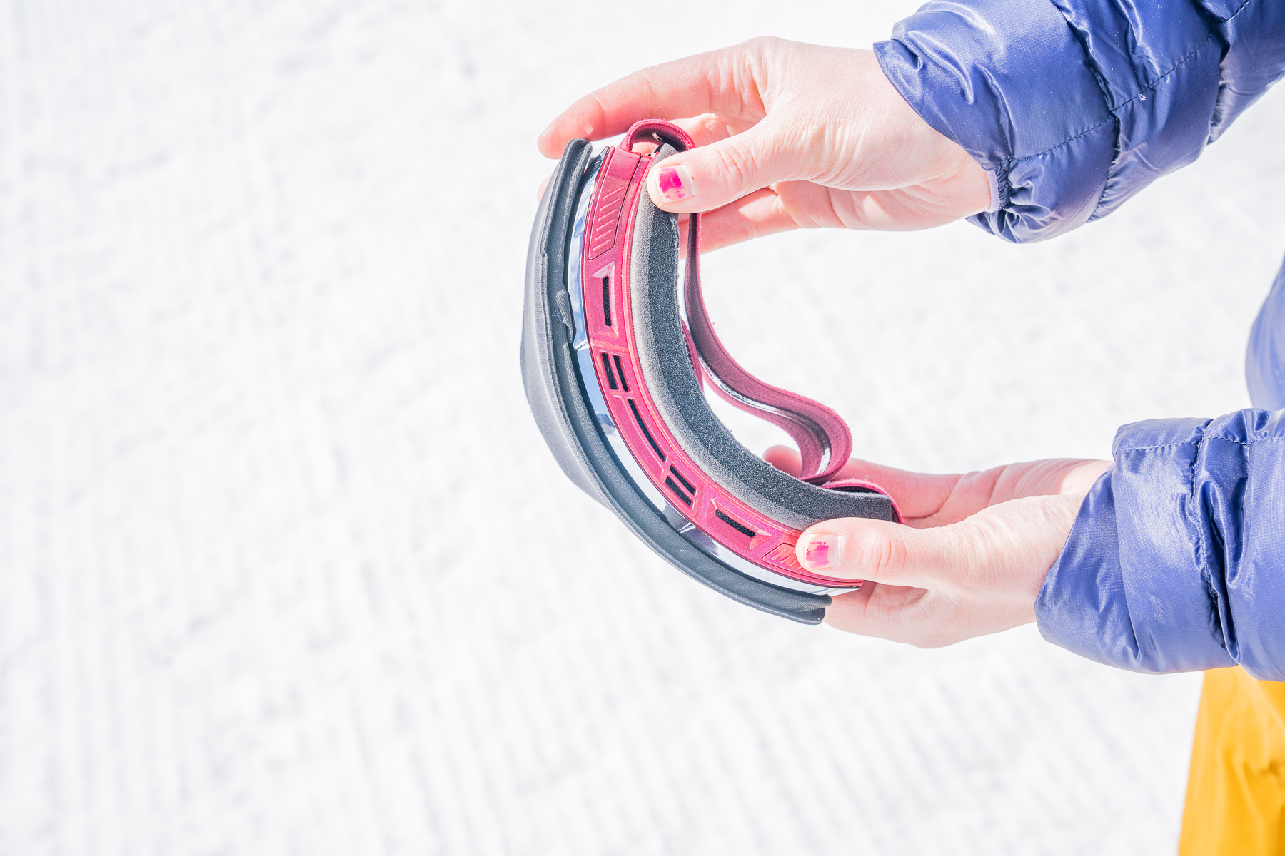Traditional interchangeable lenses have a handful of tiny teeth around the edge that pop into and out of divots in the plastic frame. You need to align the divots, which can be a tad time-consuming if you’re not familiar with the process, so be sure to practice at home before going on the ski lift to swap out a lens. You can also get fingerprints on the lens, so carry a goggle wipe to clean up.