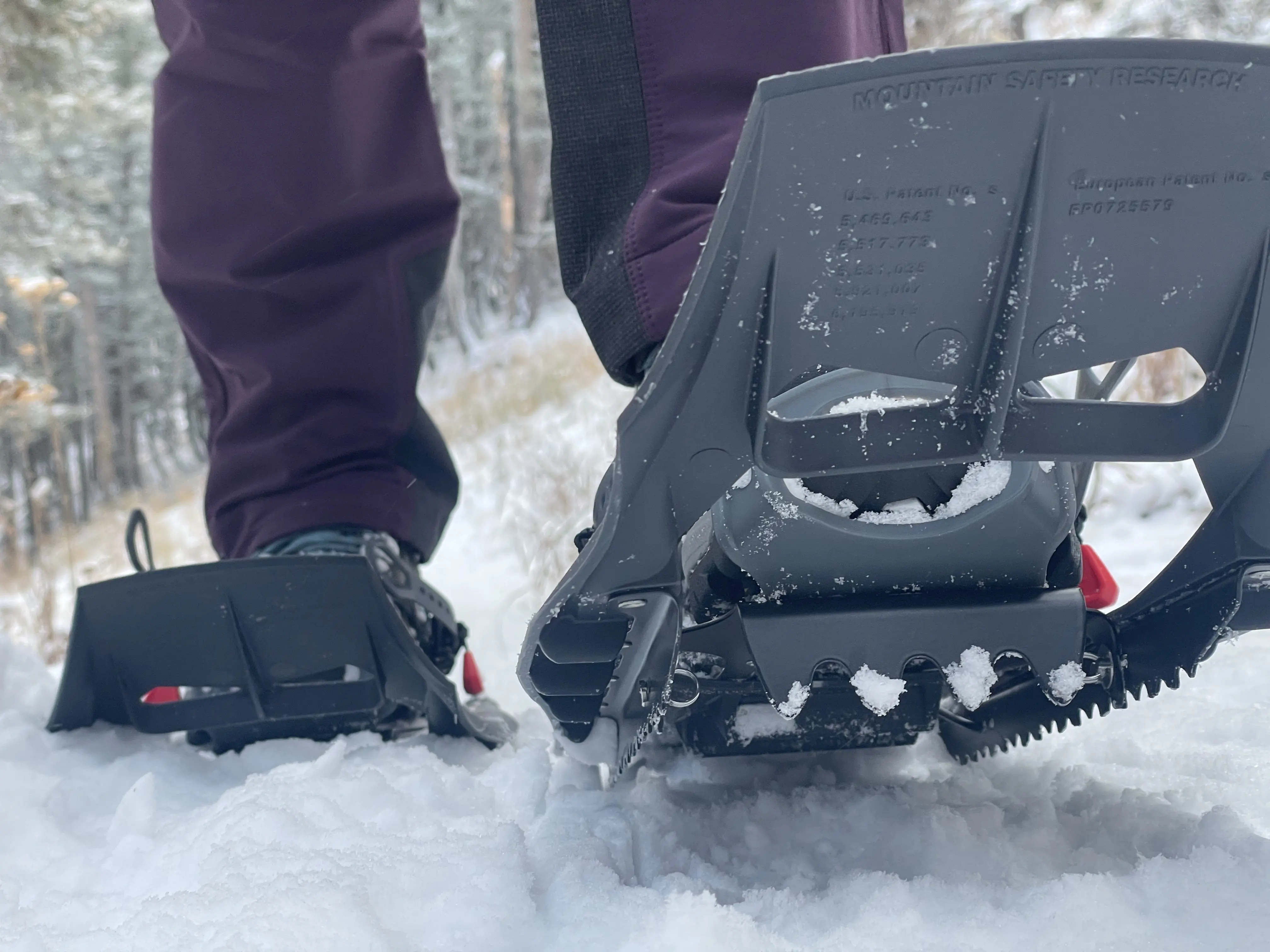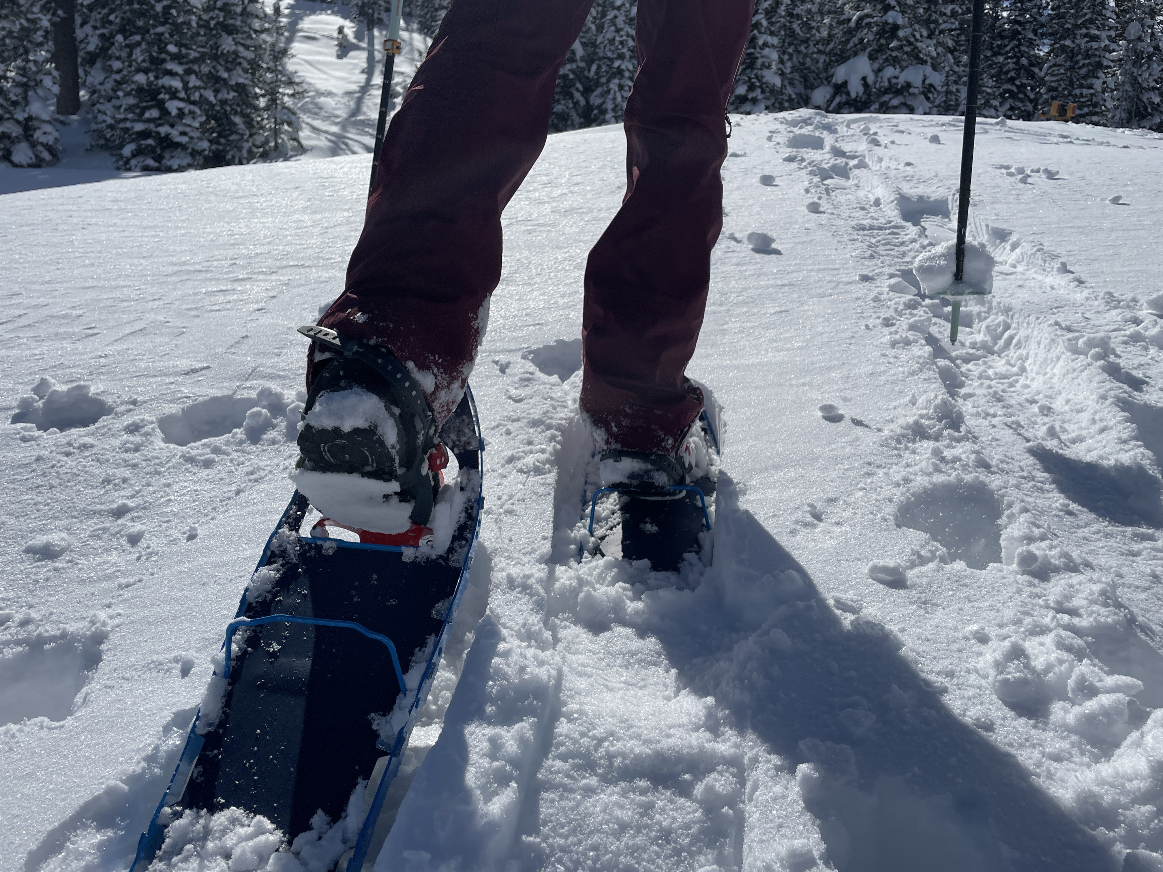 Heel risers are a key feature if you plan to do any ascents up steep terrain. Trying to snowshoe uphill without heel risers will result in immediate calf fatigue. You may think that hiking sideways up an incline to create switchbacks is a solution, but trust me, this is awkward unless there’s an established flat trail of switchbacks.