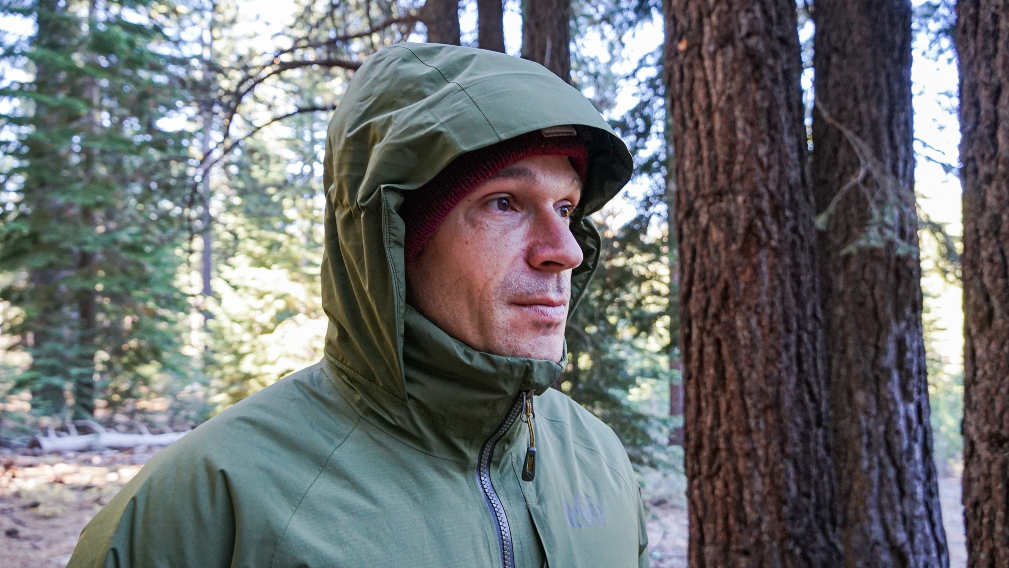 One of our favorites is actually the simple and cozy hood design of the Arc’teryx Atom SV Hoody. This jacket has a fitted hood with only one adjustment cord, and it’s sized to fit over a climbing or ski helmet, should you need to button down the hatches.