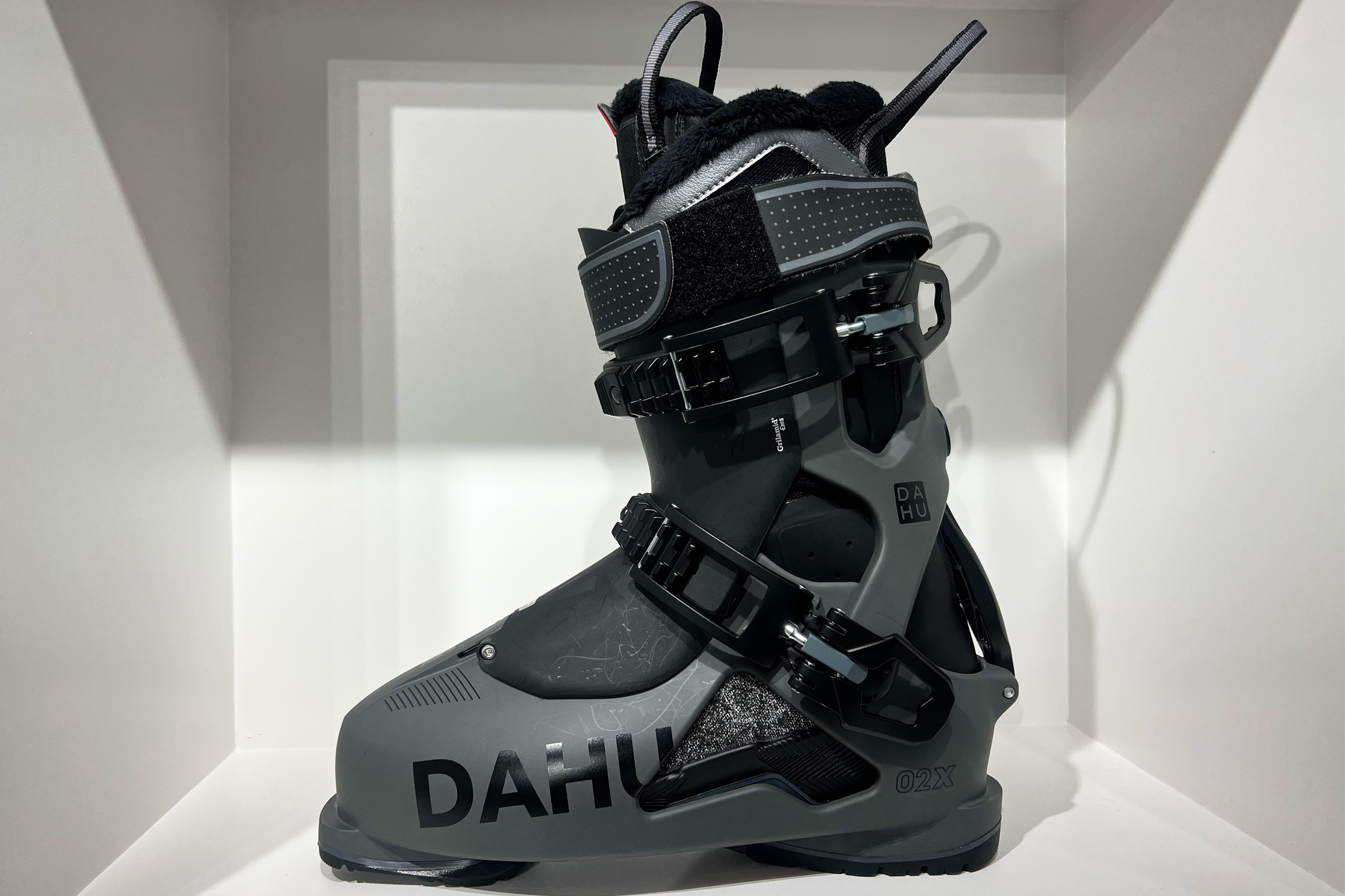 That is likely the result of three factors. First, the 02AM uses a polyurethane (PU) plastic shell. While Grilamid plastic — aka polyamide (PA) — is lighter, there’s a reason why most boots are made from PU. Of the plastics used to make ski boots, it’s generally considered to have the best performance attributes for downhill skiing. That’s why Grilamid is more commonly used in touring boots than in alpine boots like Dahu’s.