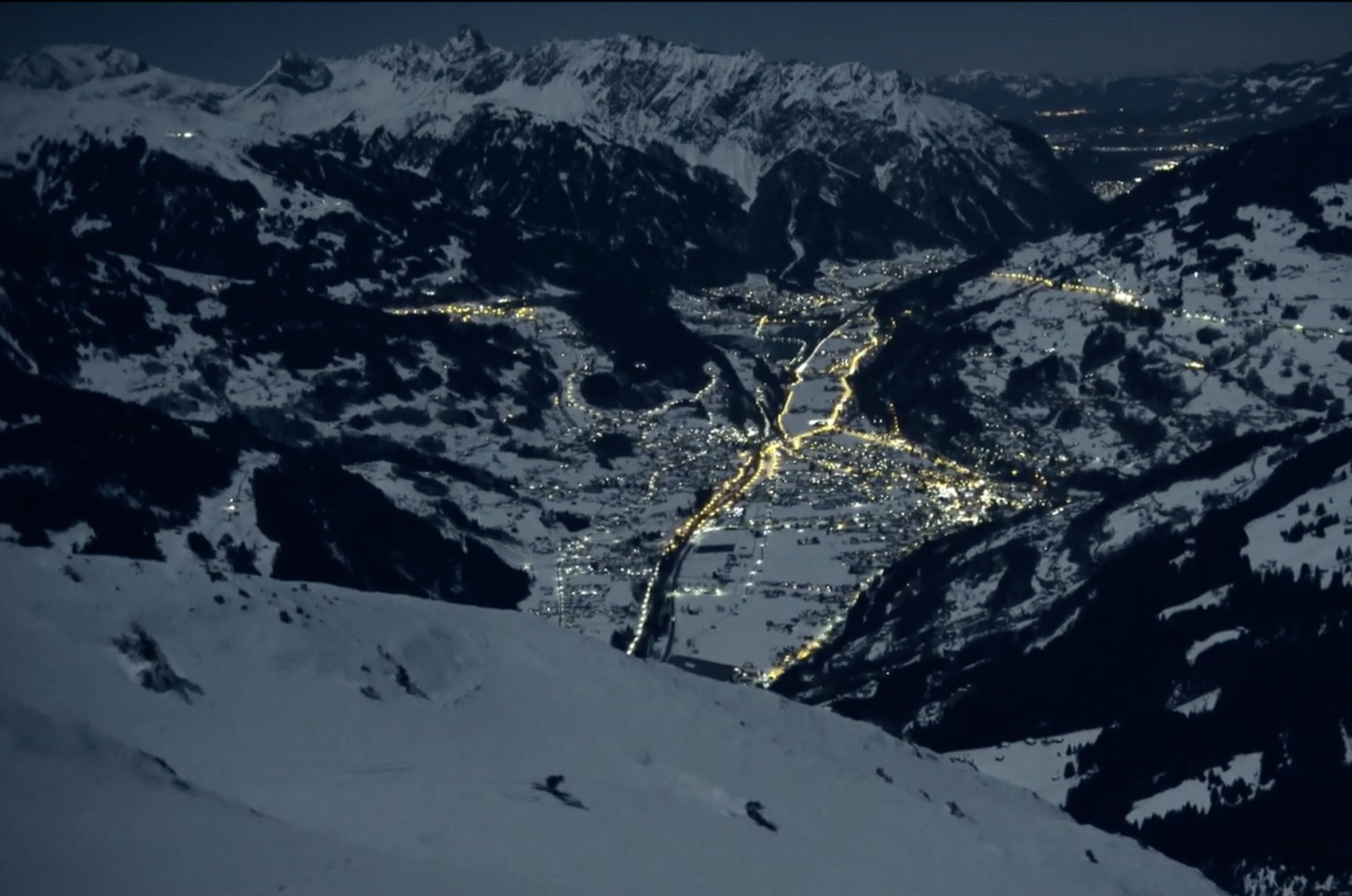 The film starts in the afternoon and quickly moves toward sunset. The lifts close. Quiet sets over the Austrian Alps. Then, a small team of friends ventures out under a full moon to ski — and film — with only natural light.