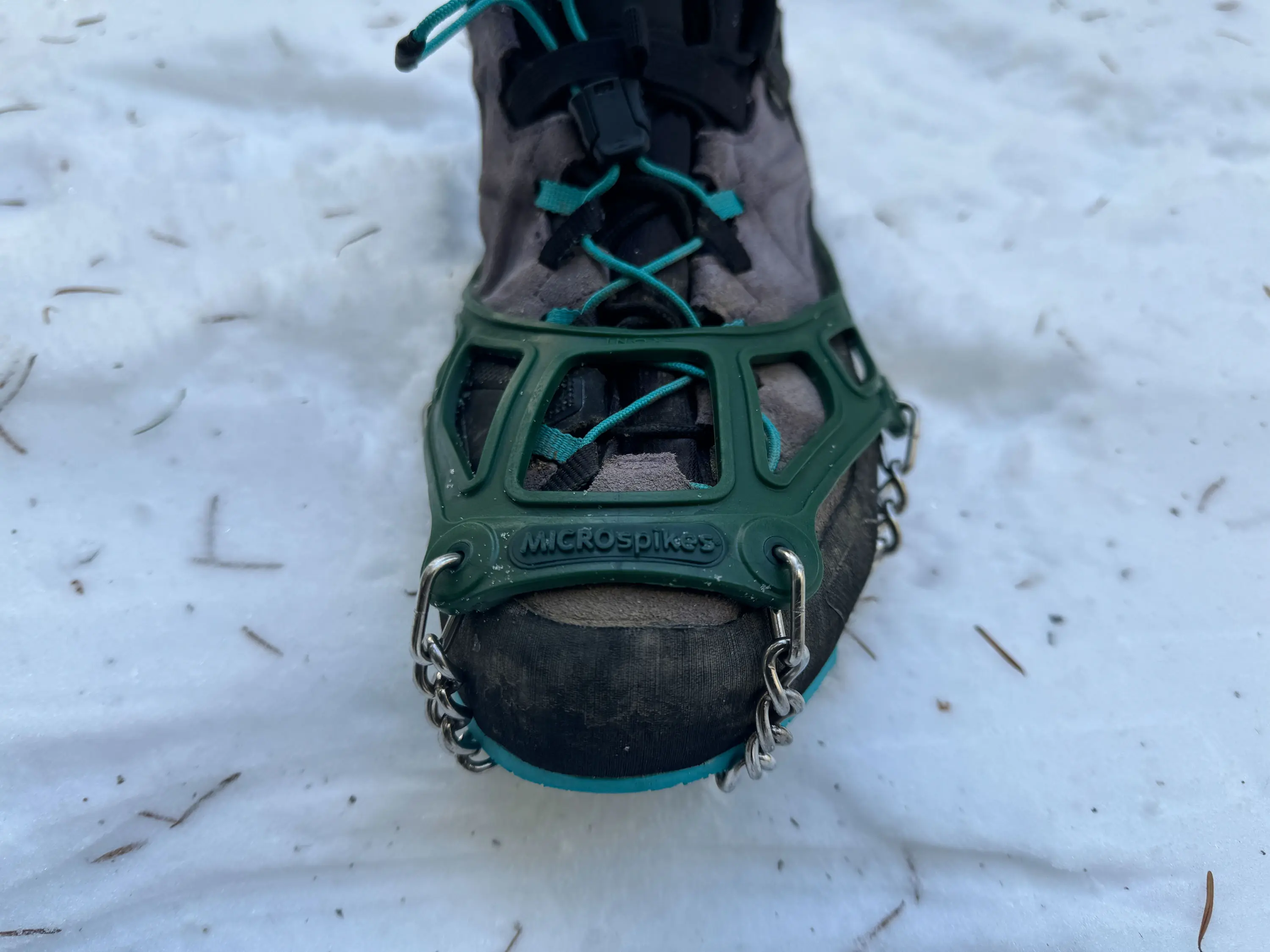 However, one of the best perks of the MICROspikes is their ability to adapt to different shoe types and sizes. I was happy to find that my small pair were able to fit over almost any type of hiking footwear I could pull out of my closet.