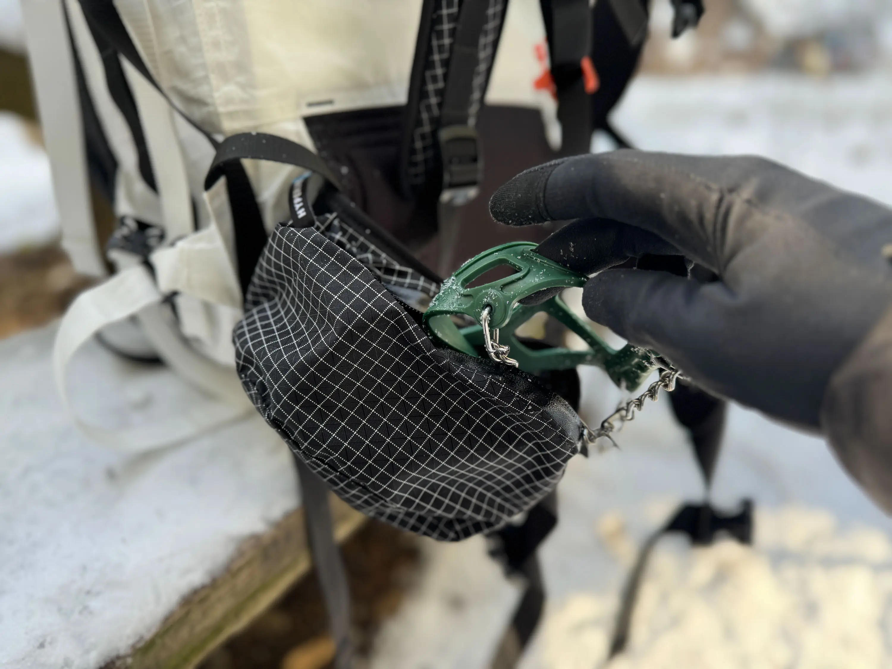 Packing these spikes is like carrying the weight of two grapefruits, though I promise they pack down easier. I personally found it helpful to toss them in the hip pockets of my pack for easy access. Their flexible rubber makes it easy to bundle and shove wherever you need them to go.