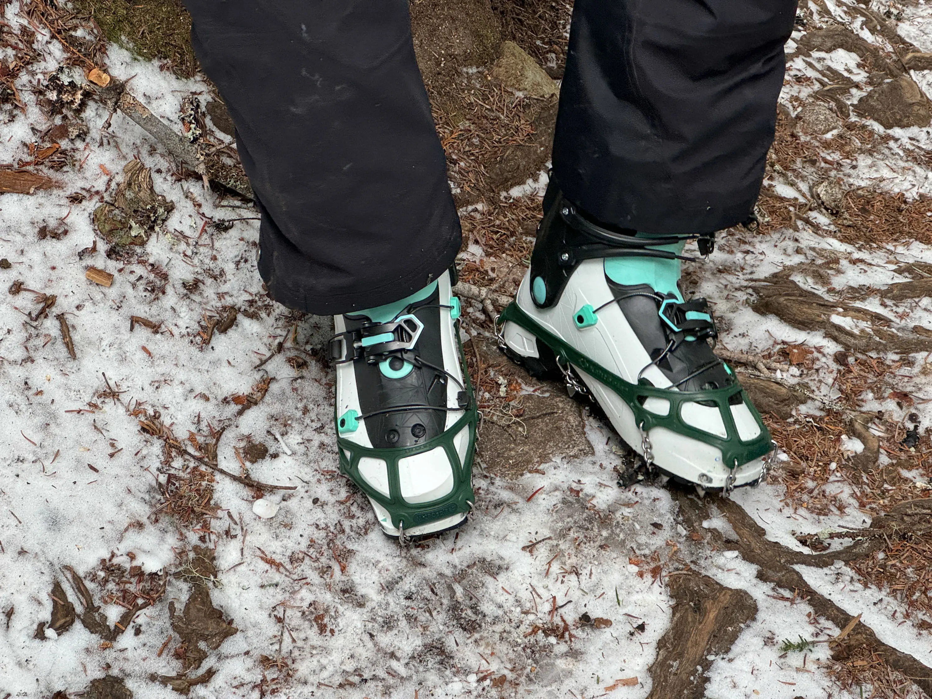However, I was most excited when I was able to pull these spikes over my ski boots. It certainly was harder to pull them over the thick boots, and for the long-term durability of the harness, I wouldn’t recommend doing so often. Nonetheless, it’s nice to know they’ll fit over a big boot in a pinch.