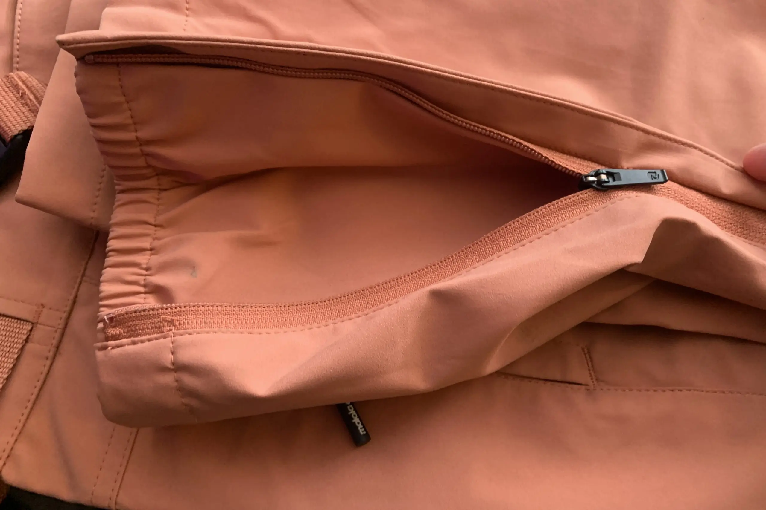 - Pockets: 4 zippered (2 hand, one thigh, one back pocket)
