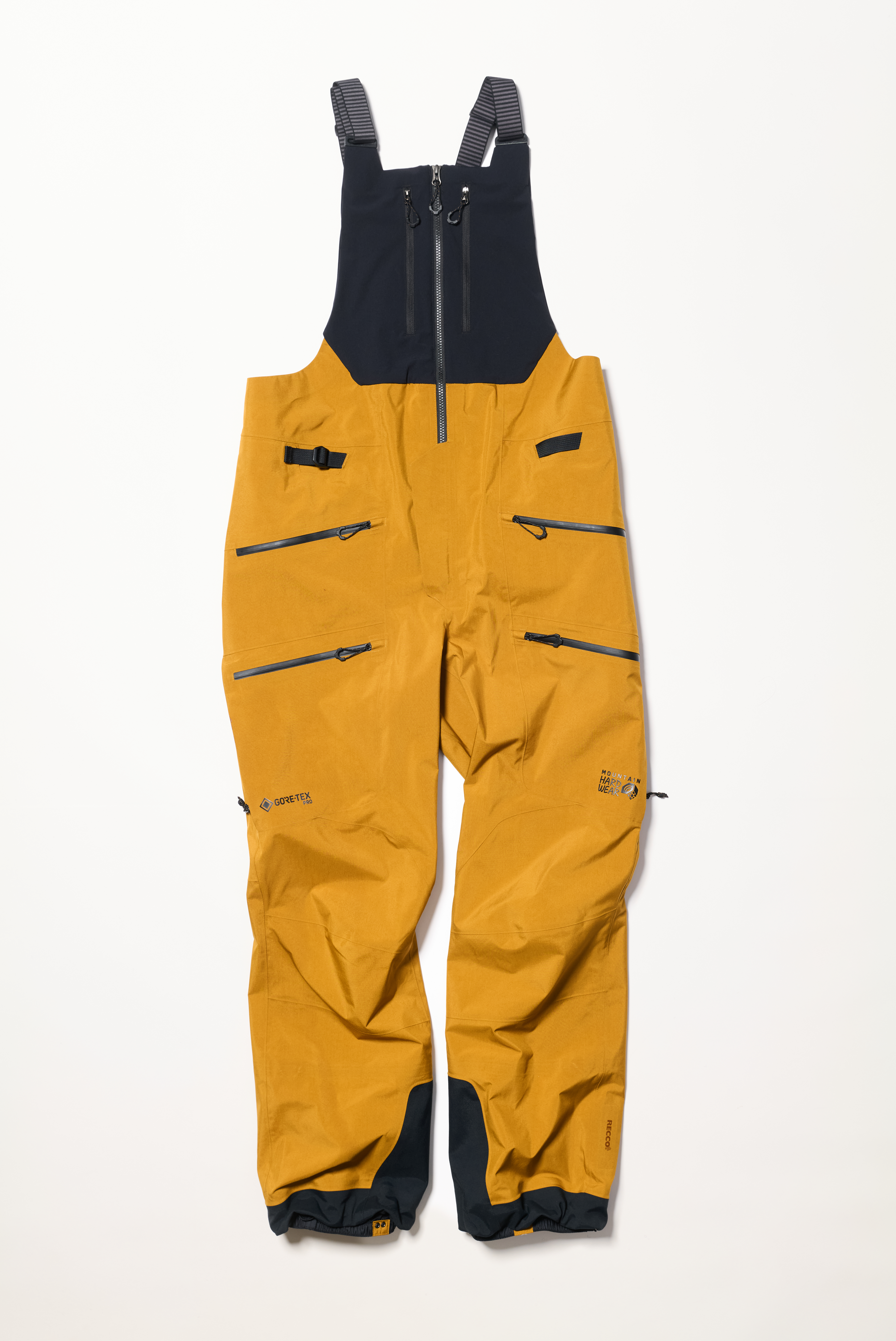 That challenge is why Hagna and designers like him got into the business in the first place. They’re free to imagine and employ top-of-the-line fabrics, pockets, and technical features without price points as a limiting factor. From there, the Mythogen Kit was born. This jacket and bib combo incorporates Mountain Hardwear’s best ideas and a few new tricks for high-end ski mountaineering and freeride.