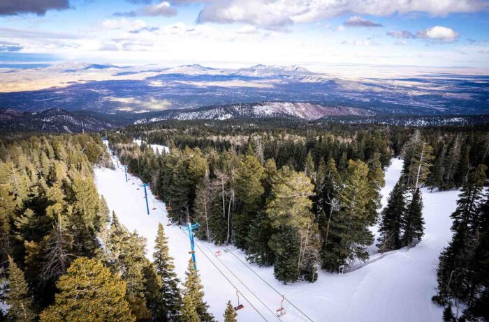 Founded in 1936, Sandia Peak Ski Area is situated in the picturesque Sandia Mountains, just 35 miles northeast of Albuquerque. It’s reachable by the Sandia Peak Tramway, the third-longest single-span aerial tramway in the world.
