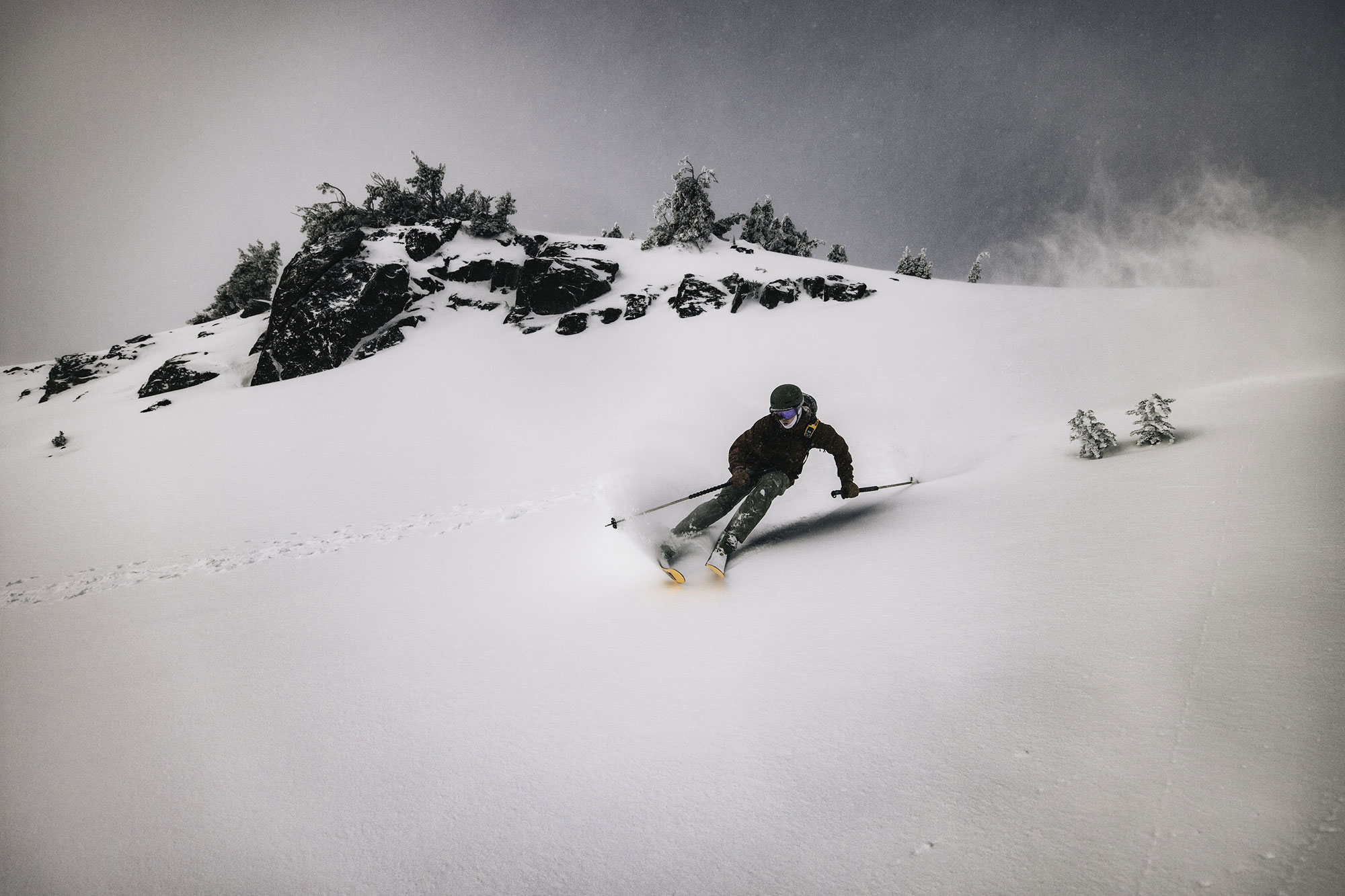In deep, low-density cold smoke, the Renegade is the same as it ever was: pure euphoria. Because there’s zero camber, the ski doesn’t fight you at all. The slightest movement of your legs will initiate a turn, with the catch that this turning motion differs from that of most other skis. You don’t carve turns by driving; you simply pivot.