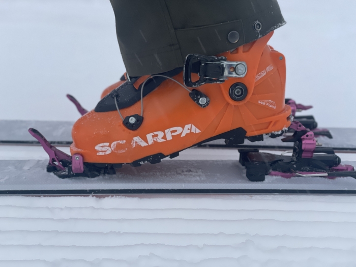 What We Like: The toe lock lever is excellent—you don’t have to be an Olympic bodybuilder to pull it up into walk mode like you do with some competitors. We also love the “Step-in Aid,” which guides your boot perfectly and rarely misses a click. On the skin track, the three climbing levels are easy to switch with a simple flick of a pole.