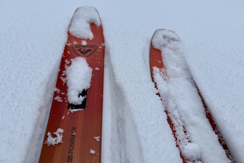 The Rossignol BC 80 Positrack also has tip notches for backcountry skins for increased grip on steep and challenging terrain.