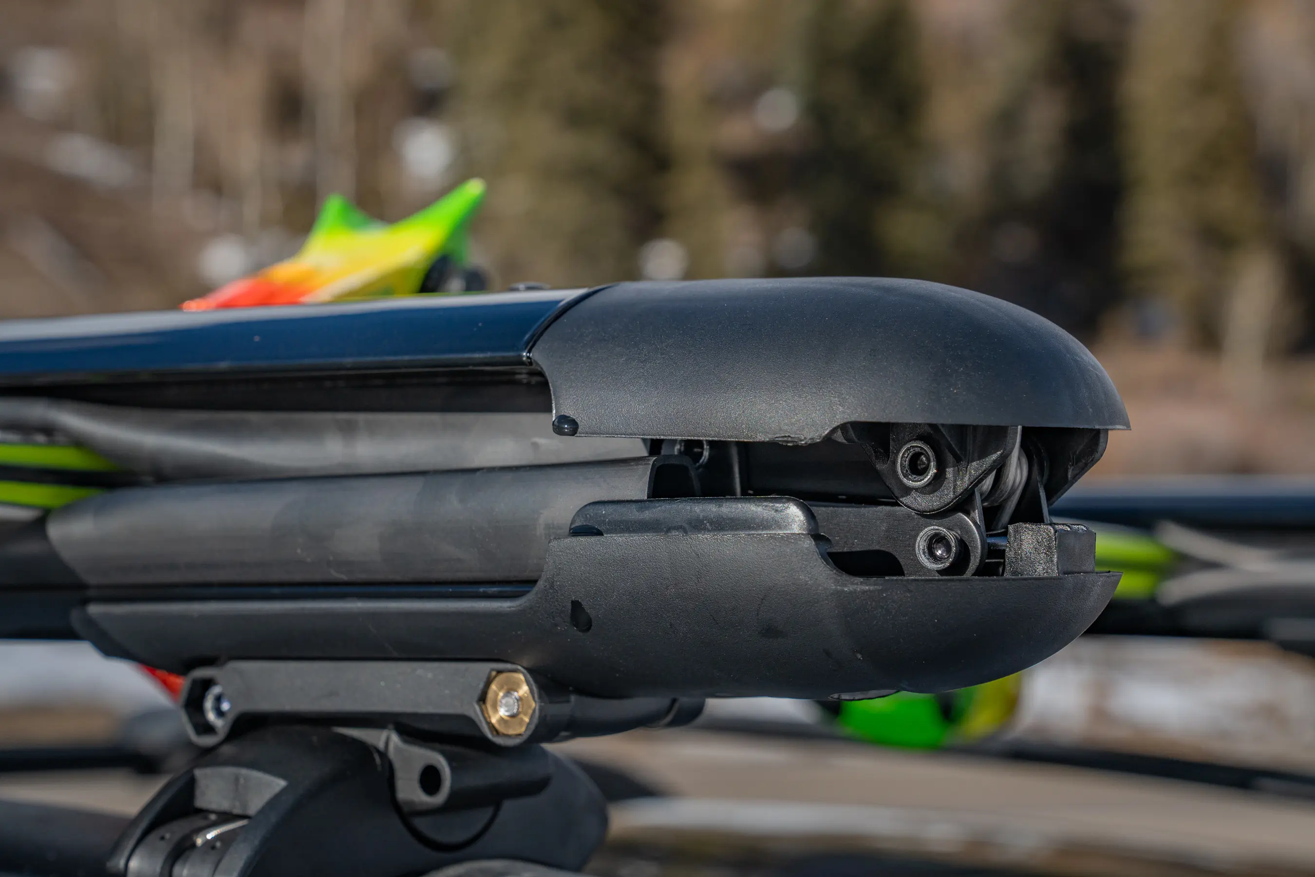 The higher gap allows room for bulkier ski or snowboard bindings. One rack we tested, the Yakima FreshTrack 4, has an optional extender bar that places the rack at an angle, taking a triangular form, to create more space for bindings.