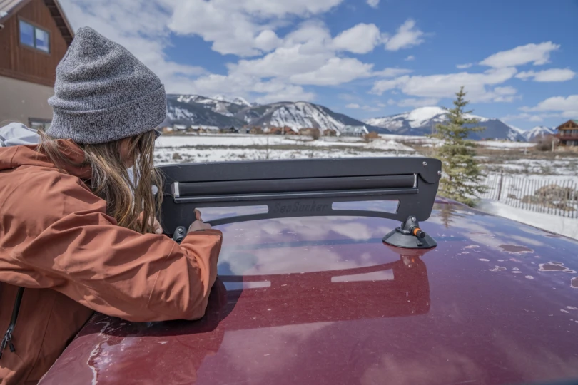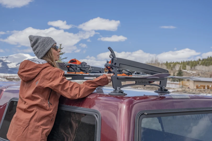There are some vacuum mount ski racks, too, like the SeaSucker Classic Rack.