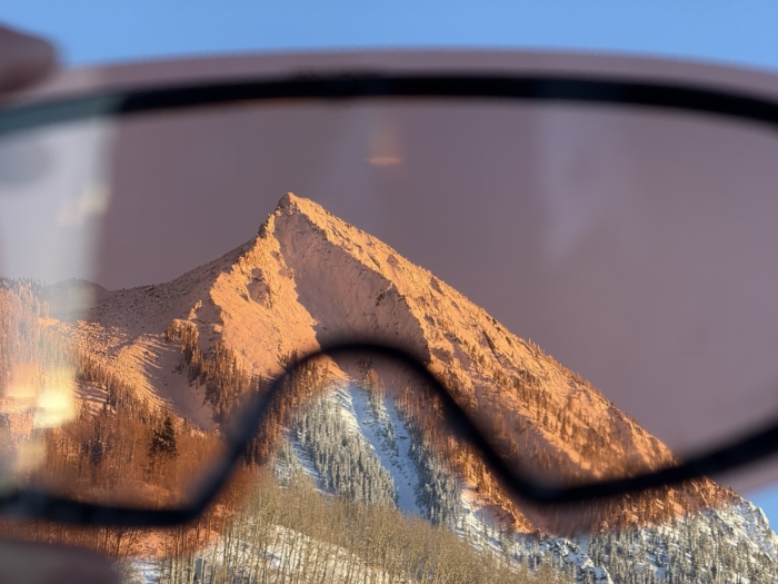This ski goggle lens offers a pristine window to soak up the surrounding details in the landscape, which pushes it to the top tier, found Senior Editor Morgan Tilton while riding countless days of variable light conditions at Crested Butte Mountain Resort and Telluride Ski Resort. The visible contrast and highlights hit a sweet spot. This premium goggle is made with a spherical lens that curves along both the X and Y axis, which elevates the acuity, and we found that to be true across all conditions from super sunny to blustery and flat light days. We found that the Mag has a great overall fit, volume, and fog prevention.