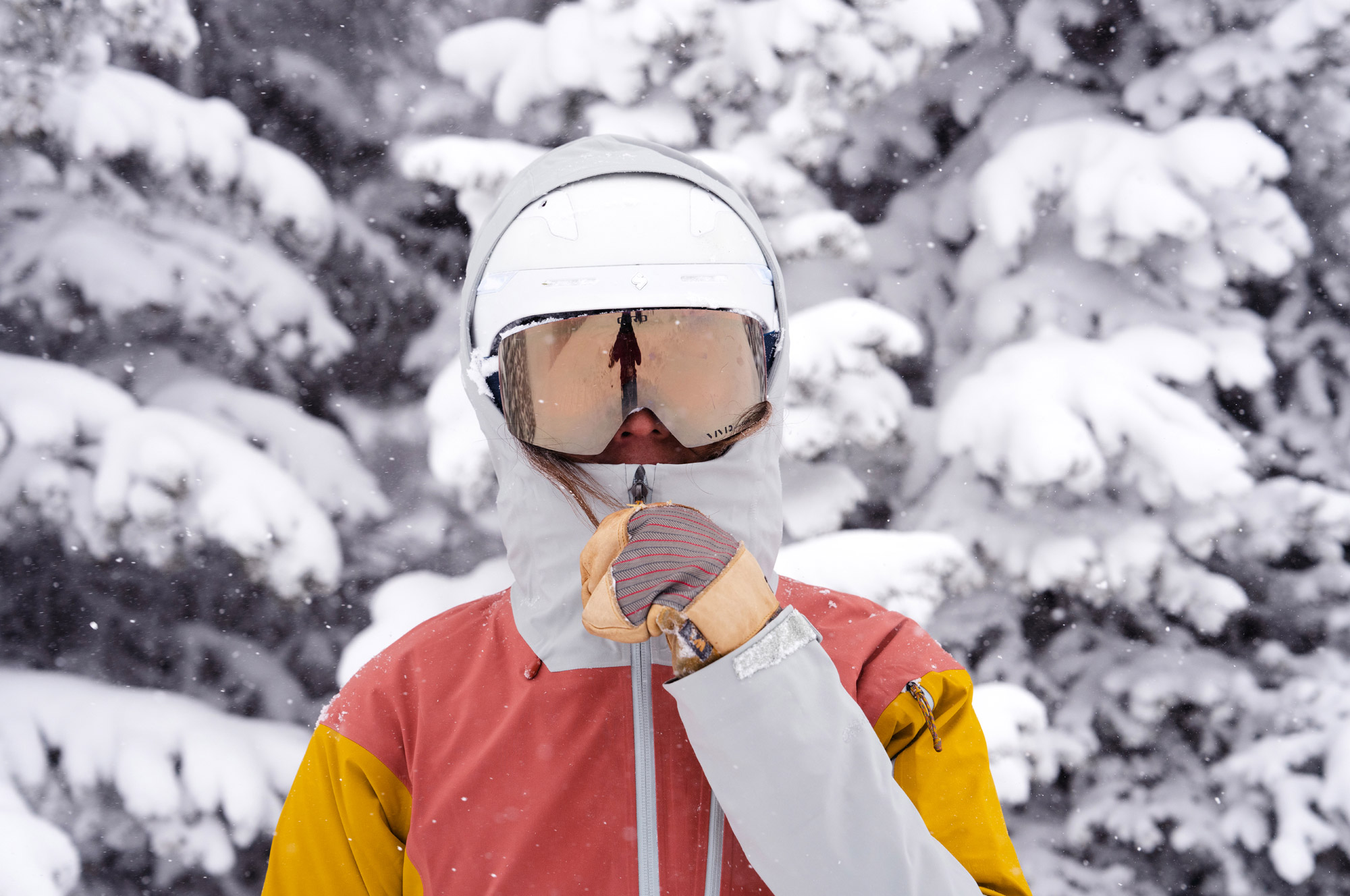 One of our favorite hoods is on the Patagonia Men’s SnowDrifter Jacket. It offers a great shape that fits over a range of helmet sizes and doesn’t catch a draft. Plus, it has plenty of flexibility to swivel our heads while skiing downhill or sitting on the lift.