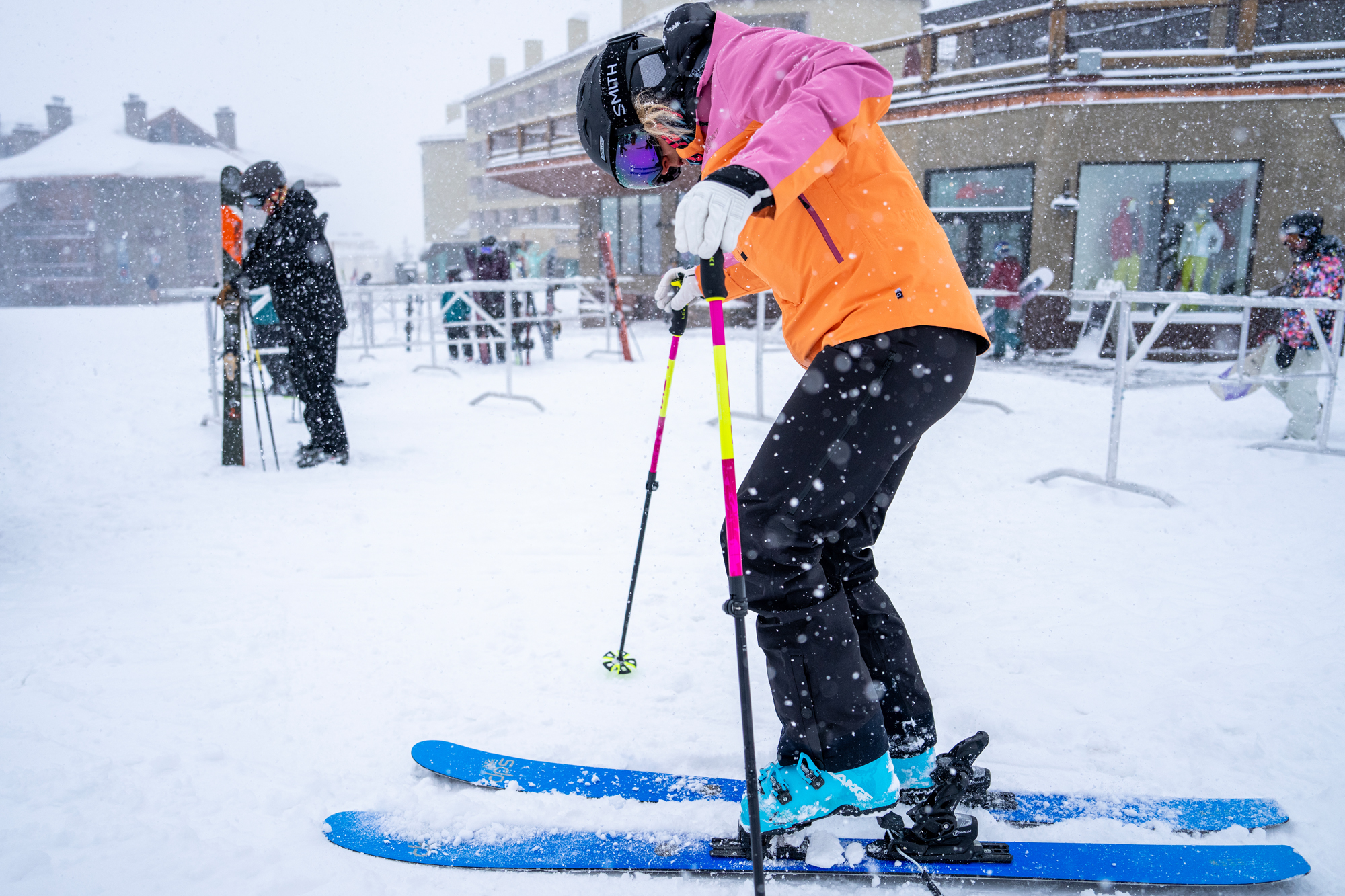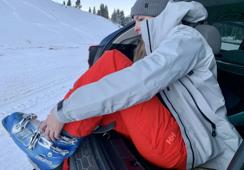 Insulated ski pants are great for sitting on cold, long, or snowy lift rides, as well as waiting in the lift line when it’s freezing and gusty out. If the temps drop into the teens and wind picks up, we prefer insulated ski pants.