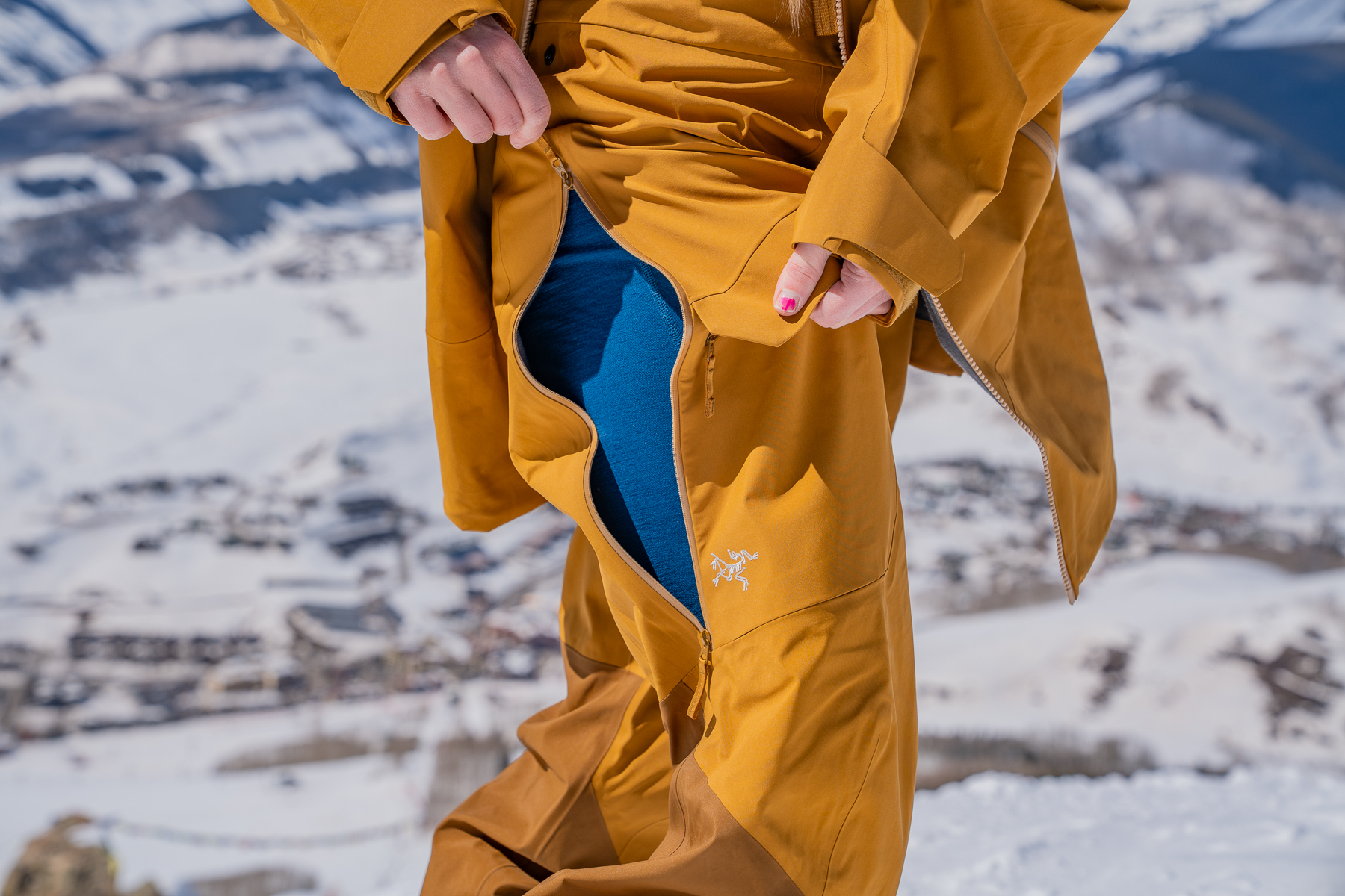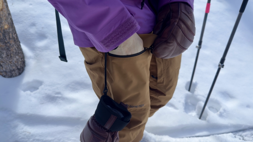 For instance, the interior leg vents on the Rab Women’s Khroma Diffuse GORE-TEX Pants are a whopping 9.5 inches in length: This is great for backcountry skiing, when you’re working up a sweat on the climb. The Arc’teryx Sentinel Pant is 14 inches long, lacks a mesh insert, and is located on the exterior leg. On the other hand, the insulated Halfdays Alessandra Pant has 6-inch-long vents that are very slender, so those pants are really made for the heart of cold temps.