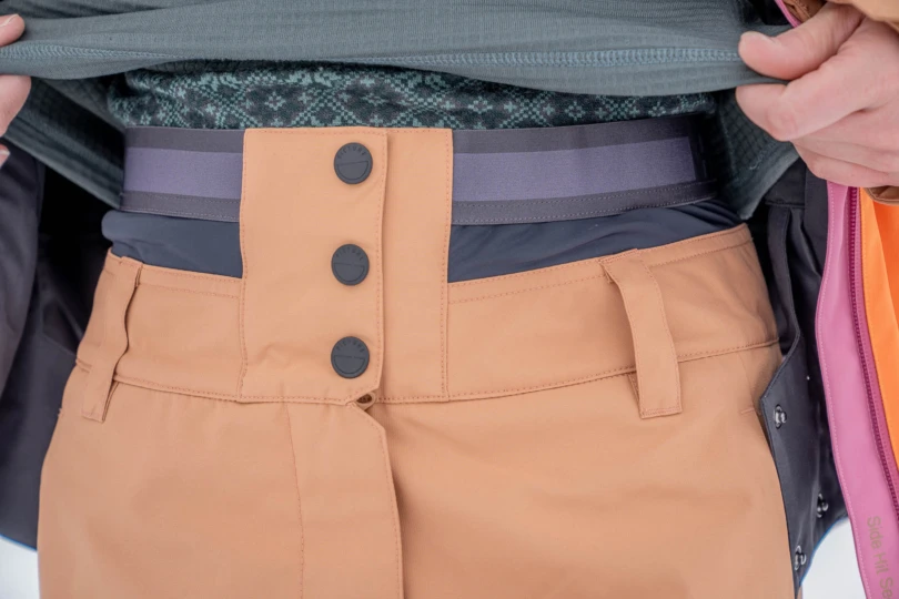 Most of the ski pants on our list have a snap closure and zipper fly, plus an adjustable waist like a velcro belt or integrated elastic belt. But you may find that pants that sit at the waist aren’t what you want on the slopes or that you’d like more coverage, in which case, Women’s Ski Bibs may be a better option.