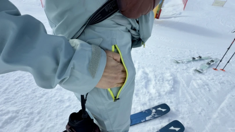 The pocket method can be tempting, because it can feel more comfortable, depending on your layering system. It can potentially enable quicker access if you need to go into search mode, because you don’t need to unzip your jacket. To that end, many brands are explicitly or non-explicitly designing beacon-specific pockets in snow bibs or snow pants. While there’s no established industry guideline, you want to be sure that a beacon-advertised pocket is internal (versus external), so it’s fully sewn in and integrated into the pant. There should be a secure zipper. And there needs to be an internal attachment point, like an integrated clip, to attach your beacon’s tether.