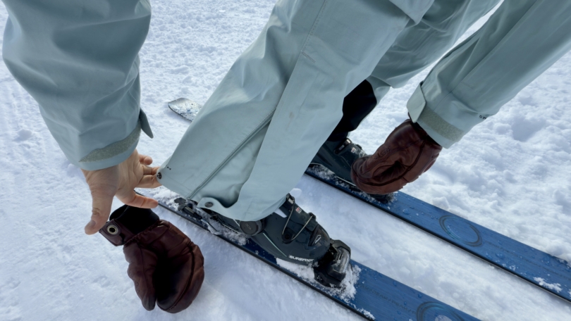 Integrated gaiters are a fairly standard feature on ski pants. When pulled down over your ski boots, they prevent snow from getting in at the cuff, especially when you’re bootpacking or on a powder day. Ski pant gaiters are integrated inside the pant, so they’re invisible from the outside. They’re made from nylon then finished with an elastic band, which keeps the bottom of the gaiter (and pants) cinched down around your boots.