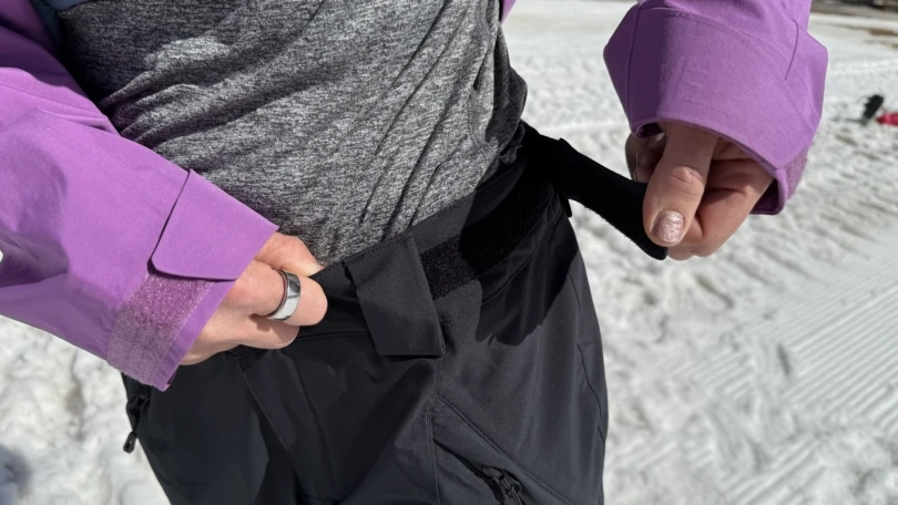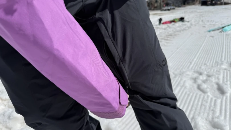 Other designs have one or two cargo pockets on a thigh, which have a top entrance. While some pockets have a fabric flap, which protects the zipper and adds style, it requires more time to access the pocket, which can be annoying if it’s cold and snowy outside. Among our choice ski pants, the Arc’teryx Sentinel and Helly Hansen Cargo Switch Pants have roomy, useful thigh pockets that are made with enough space to store a snack bar, cellphone, or other essentials.