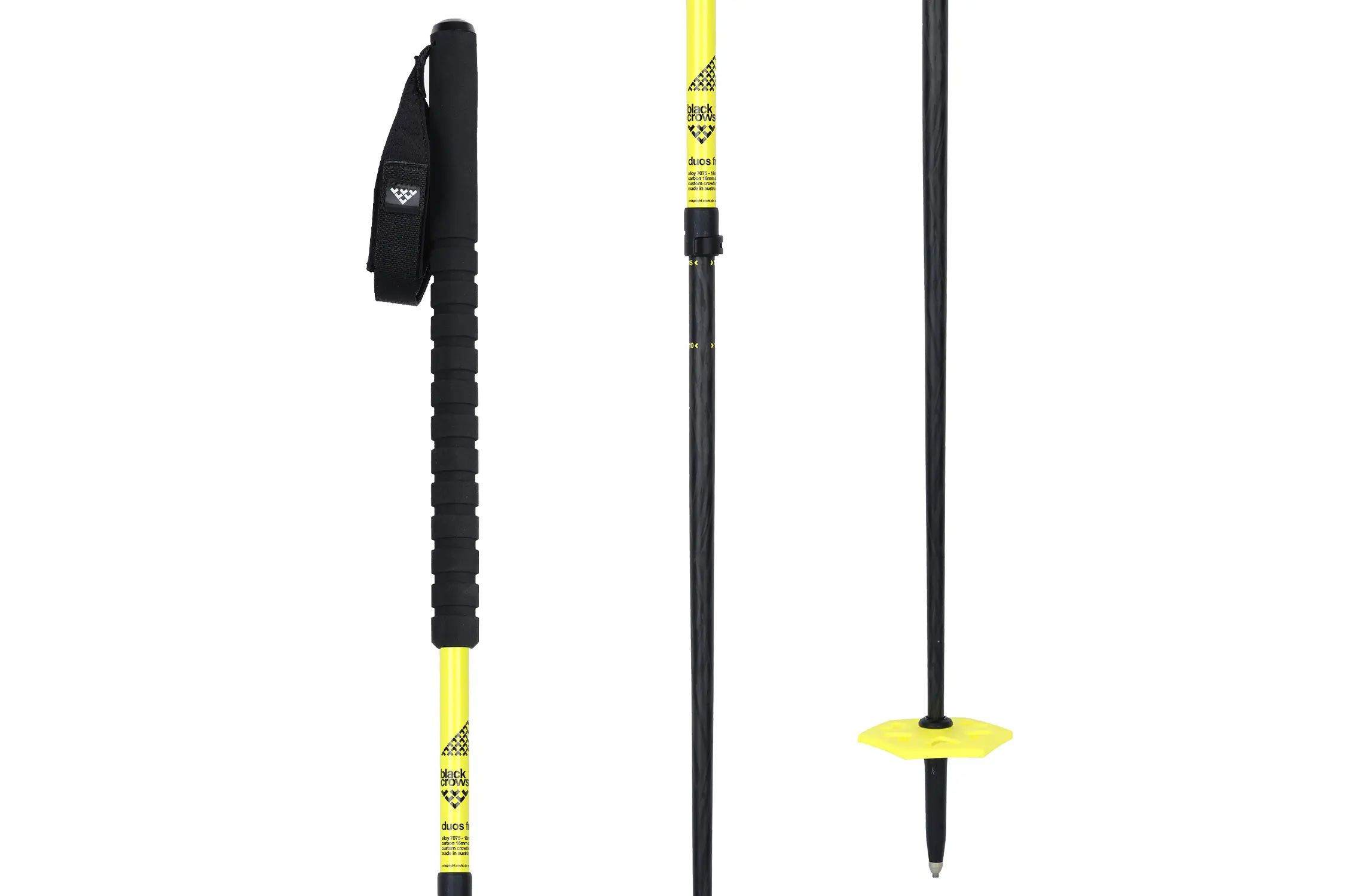 Modern carbon fiber ski poles are plenty strong for most people’s needs. However, if you plan to huck huge cliffs and ski fast between trees and boulders, you should be cautious with carbon poles.