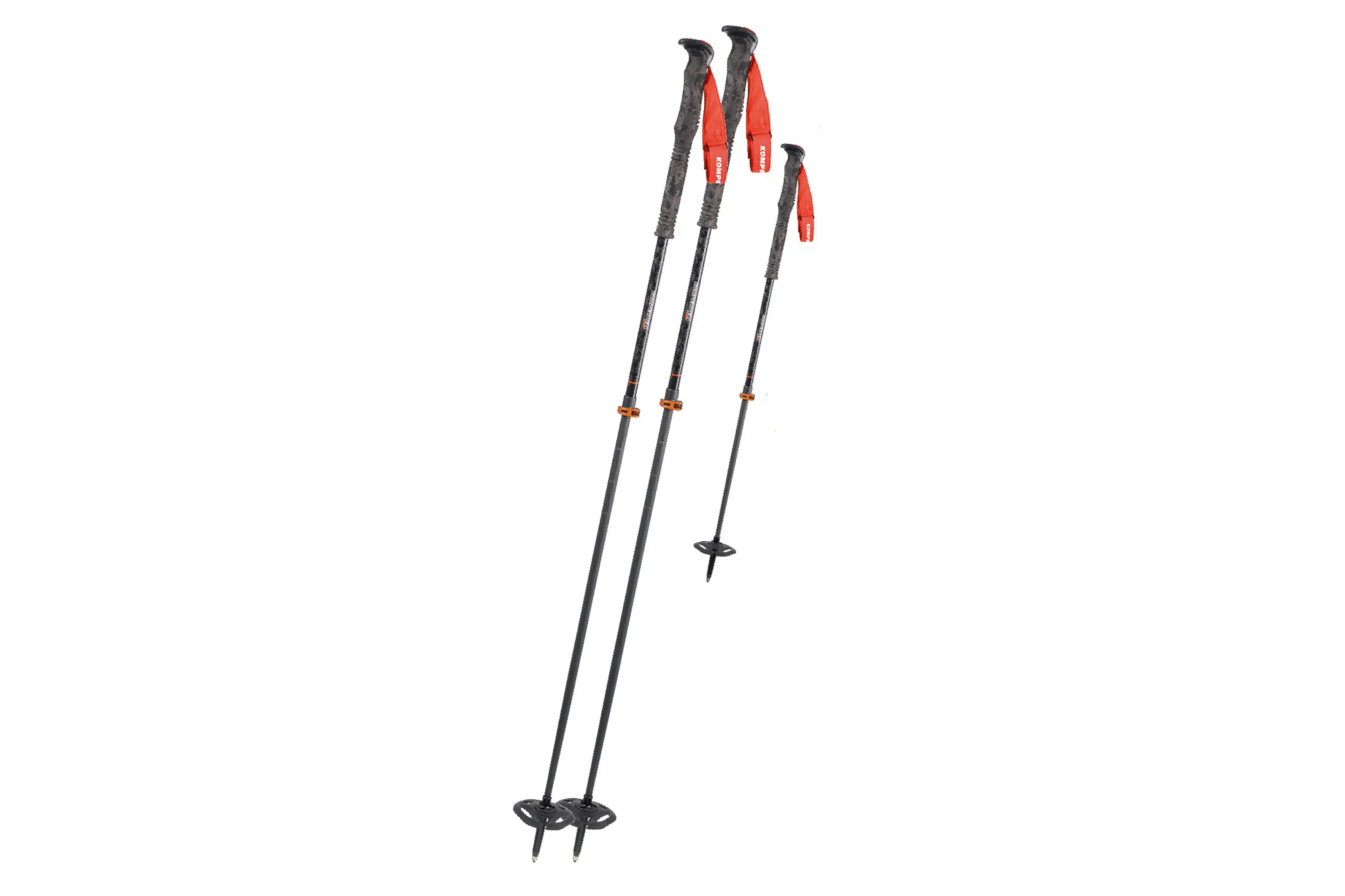 Sometimes extending poles for long flat sections can give you better propulsion. When it comes time to enjoy the thrill of gravity, poles can then be extended back to their optimal downhill length. Just as with skis, it’s ideal that your backcountry gear is as light as possible, so poles made from carbon are often the ideal choice like in the Komperdell D’Scent Vario or Black Diamond Razor Carbon Pro.