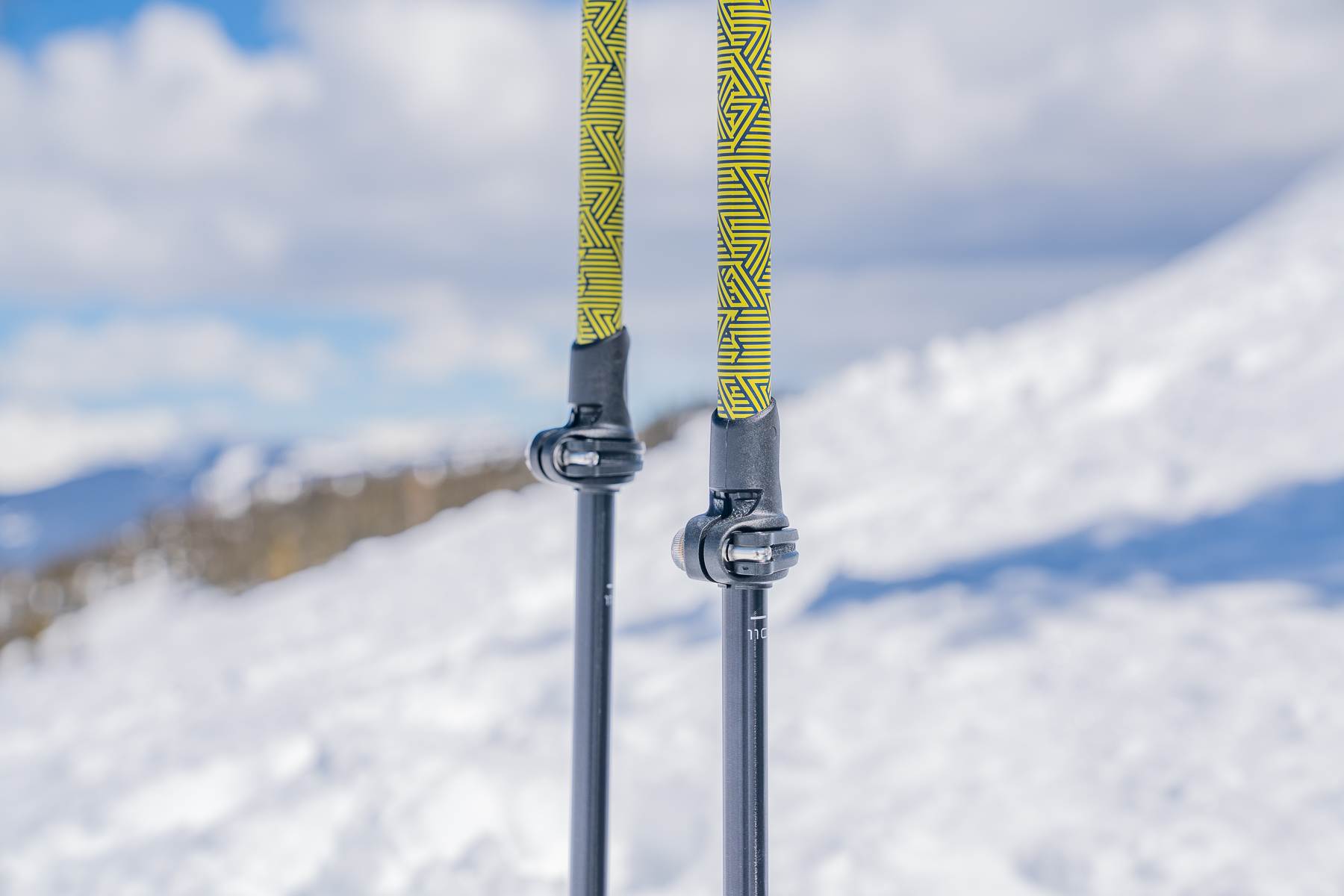Some backcountry ski poles come with secondary grips located partway down the shaft, like in the Komperdell D’Scent Vario. Extended grip poles, like the Black Crows Duos Freebird, are all the rage, especially for backcountry skiing. When uphill touring in the backcountry or traversing along steep terrain, these longer grips can be quite handy.