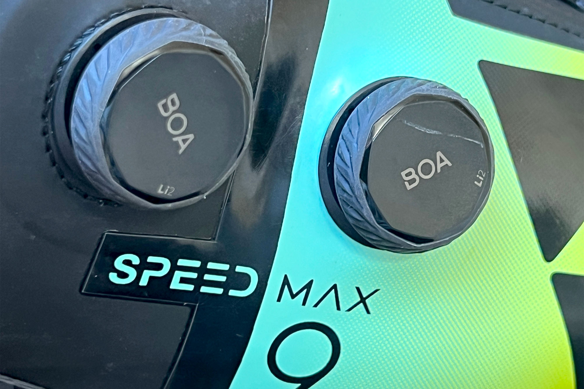 The size felt right and relatively snug. I pushed in the front dial and twisted, noting the hugging sensation around my forefoot as the BOA constricted. Then I did the same with the rear dial and felt the BOA tighten over the top of my foot near the ankle, driving my heel down and securing me tightly.