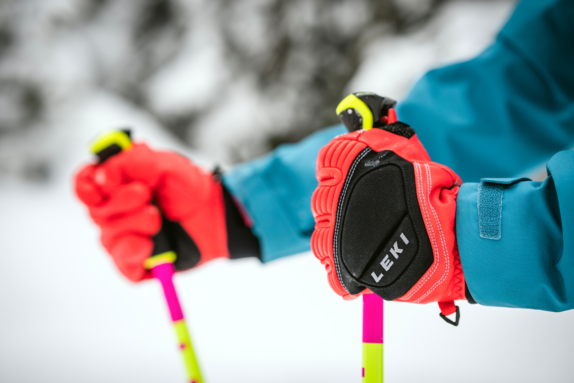 The Trigger 3D System includes two technical components that work in sync: the ski pole grip and glove. A variety of products are constructed within the camp at LEKI, and skiers can mix and match.