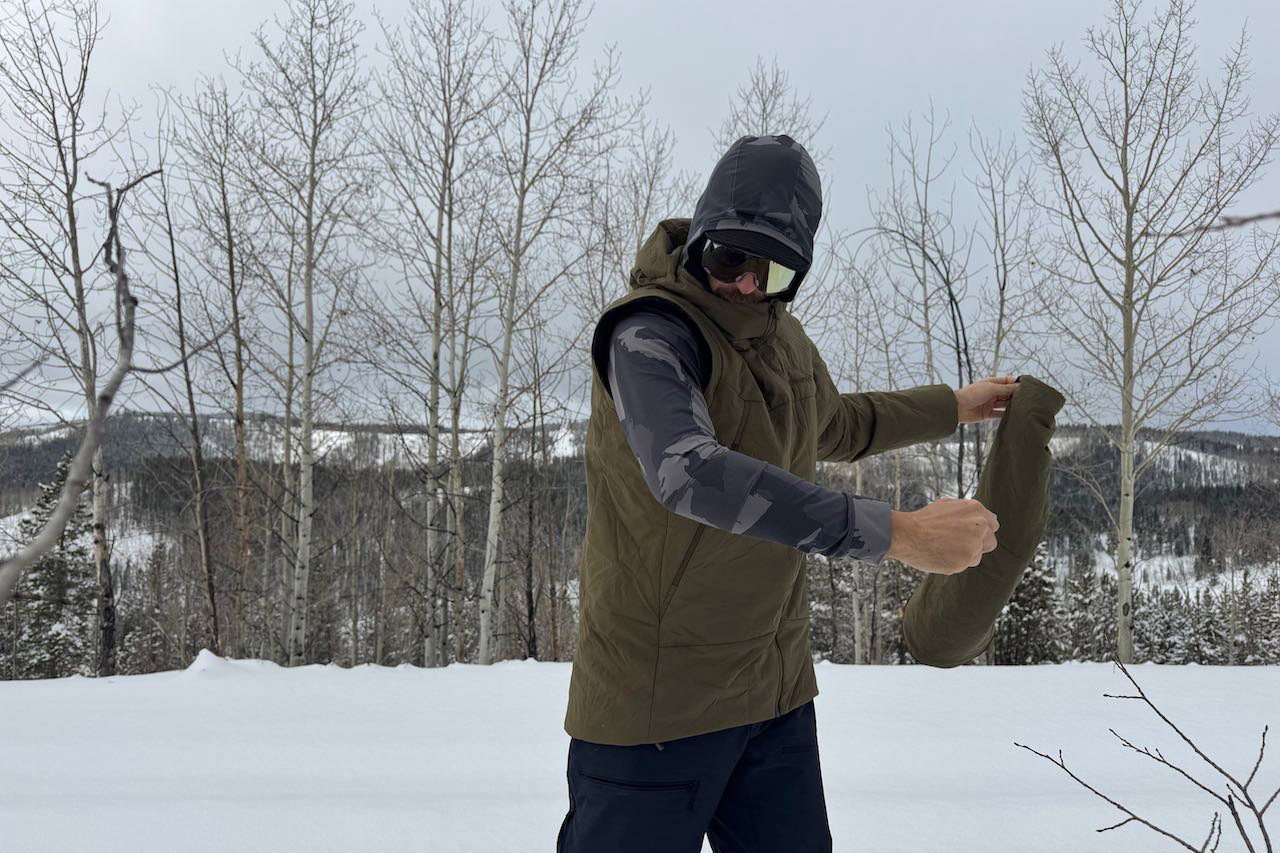 When it was really cold, I layered the Møre thermo60 in vest mode over an active insulator, and man, that was the sweet spot. Two thick layers of breathable insulation did wonders for my core temperature. The vest’s accommodating fit layered naturally over another insulating jacket without feeling constricting or compressing either layer’s insulating fill.