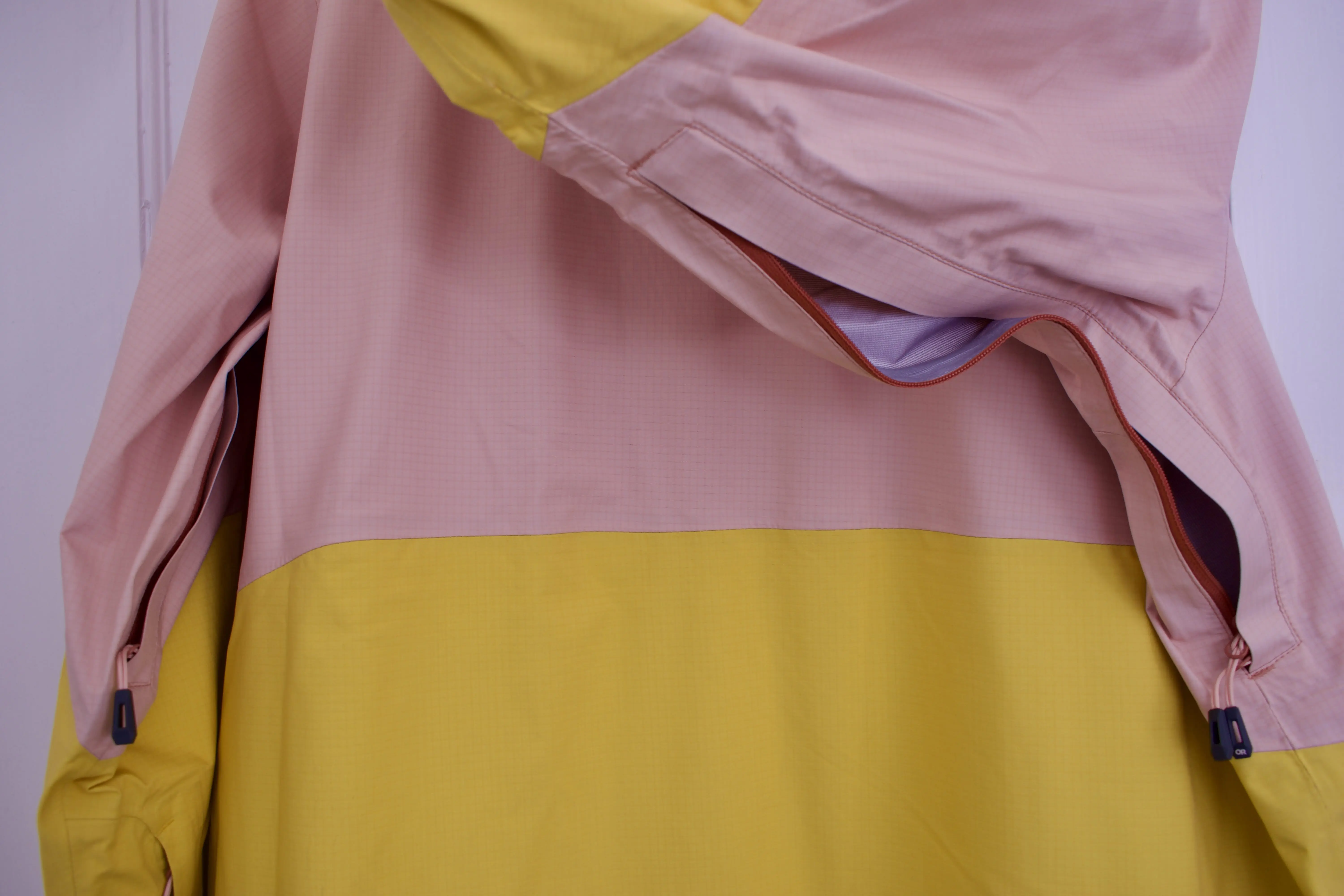 The combination of the fabric and size of the hood made it really easy to wear with my ski helmet without feeling too constricted while descending the slopes or navigating the lift lines. I appreciated being able to look around with the hood on and know that I can shred during a snowstorm without cold snow going down my neck.