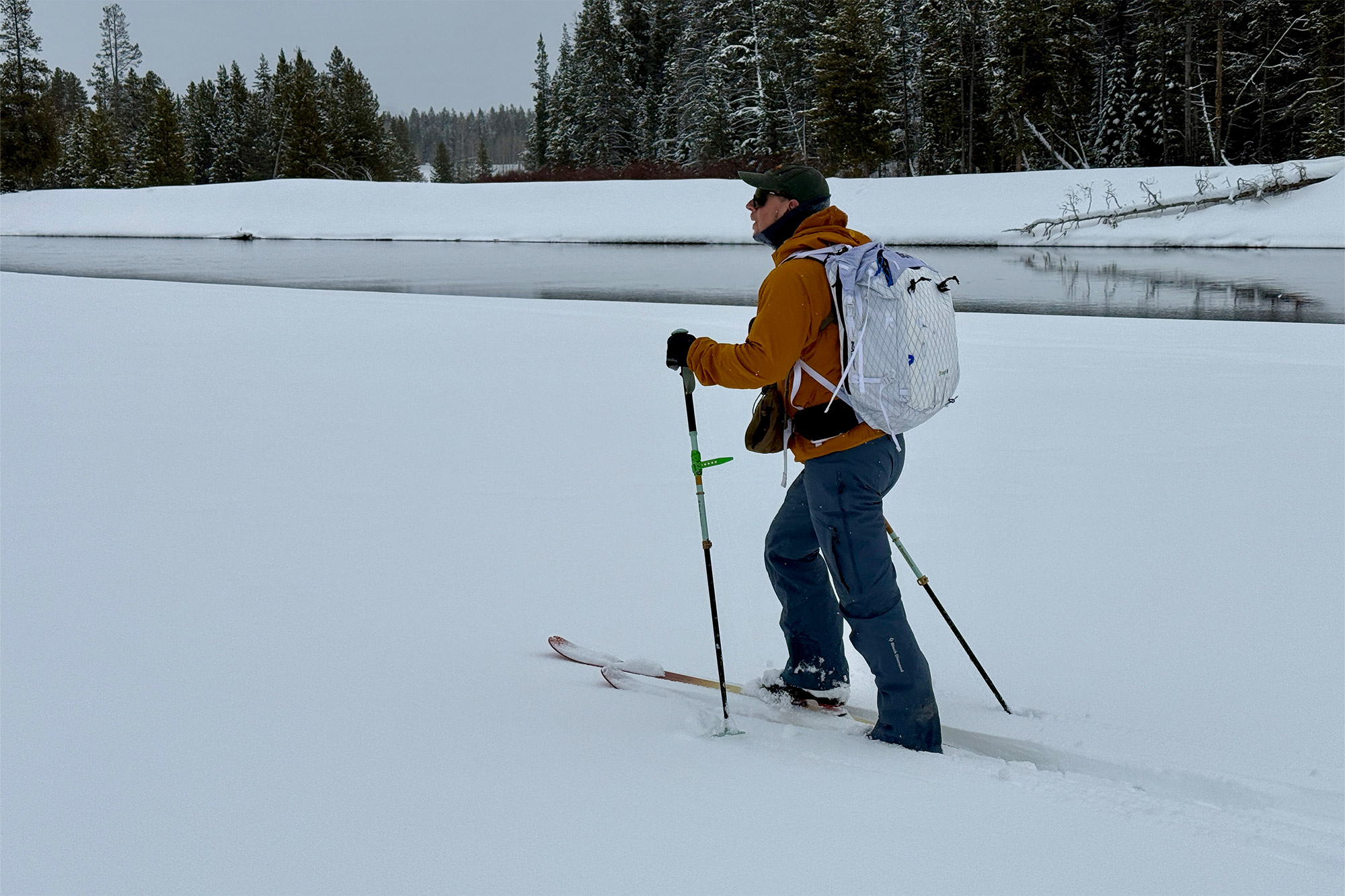 On that initial Togwotee tour — and later on midwinter powder days and firmer spring tours — the wide platform stayed on top, reducing the exhausting sink-and-step rhythm narrower skis create when breaking trail. Instead of fighting tip dive, we could focus on forward momentum.