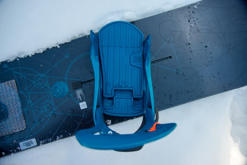 Step-on bindings secure the boots via heel and toe cleats on the outsole of the boot that connect it to the baseplate. The setups usually require a specialized boot that’s made to be compatible with the binding. Step-on bindings provide fast entry and exit compared to a traditional strap system, but the lack of straps (and in some cases, highbacks) has been known to sacrifice control.