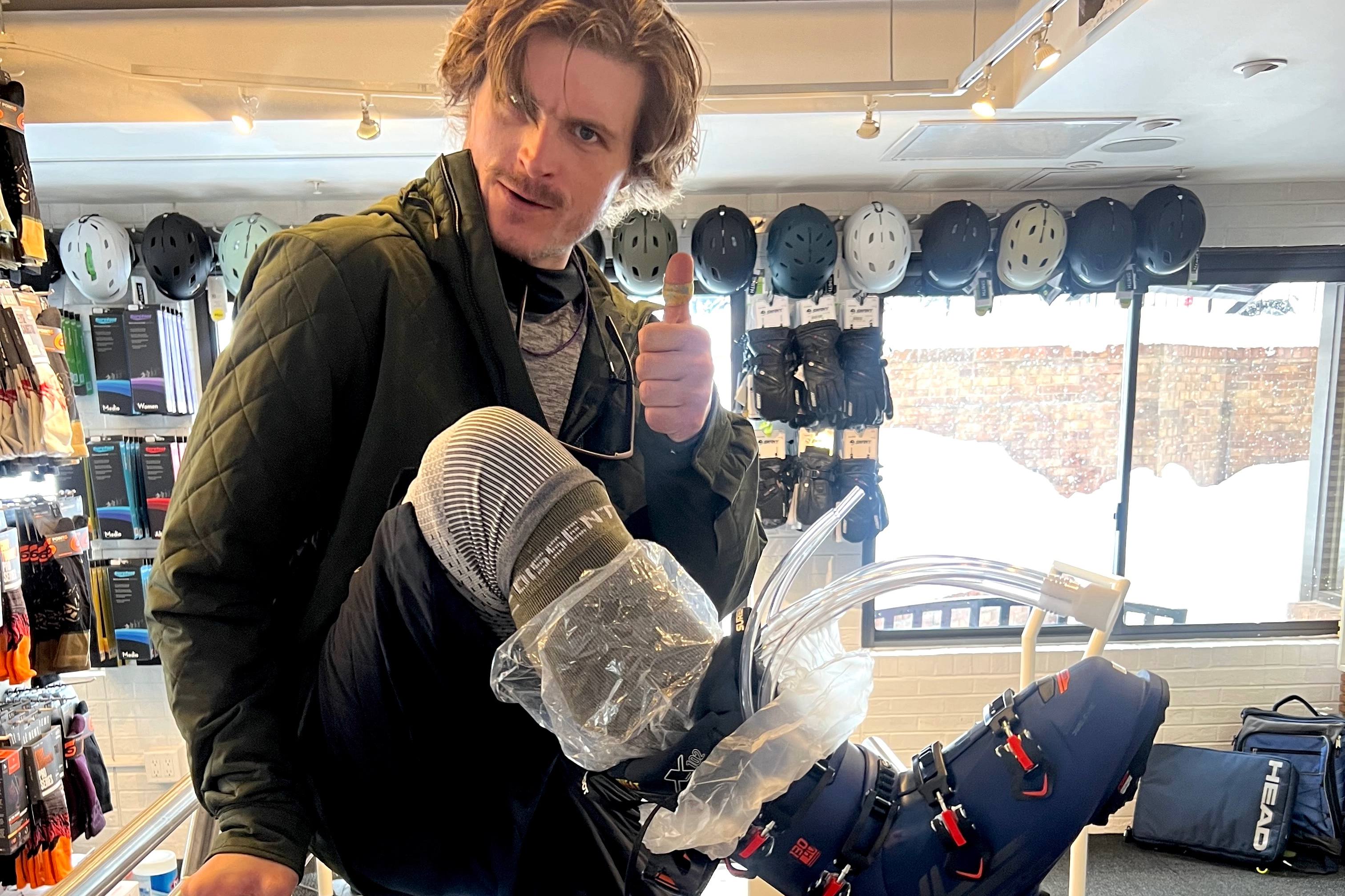 I found the Surefoot store near the base of Ajax Mountain, where I met my boot fitter, Connor. He sat me down and had me strip my shoes and socks. Then he studied my mangled skier’s feet, politely reassuring me that they weren’t the worst he’d ever seen — though I wasn’t sure how much I believed him.