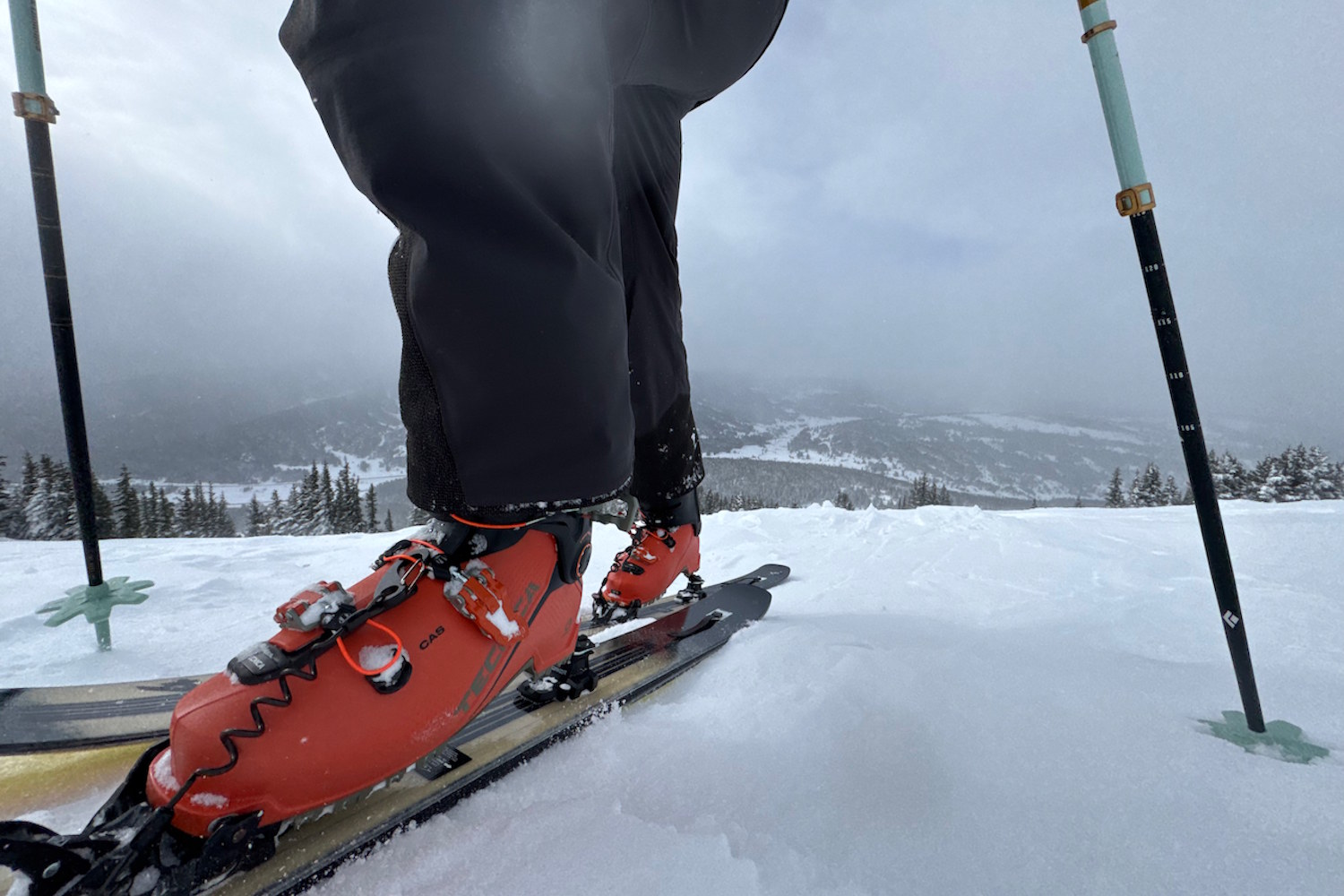 Unlike most other lightweight ski touring boots, they’ll push basically any ski to its limit in any snow conditions. They were virtually never overpowered by burly or wide skis.