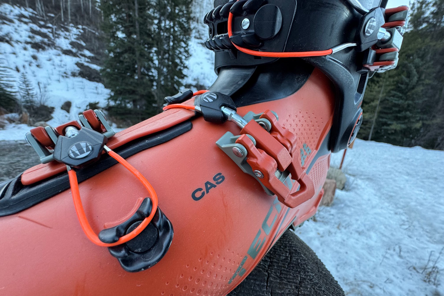 The heels are relatively narrow, and the heel hold is quite good. The C.A.S. shell is more amenable to punching, though. So there’s hope for folks that were right on the edge with the last version. Even still, they’re narrow for touring boots, and they won’t work for all feet.